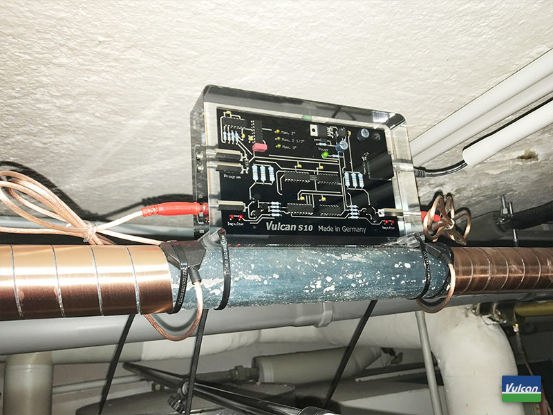 电脉冲阻垢系统 Vulcan S10 可处理直径达3“的管道,其设计完全符合小型商业设施的要求。产品可根据管道材料和直径进行程式调整。沃肯(Vulcan)安装后,即使是长时间与硬水接触的机器寿命会更长,清洁与维护等所需要的时间和精力会更少。 安装指南 – 无需切割管道。