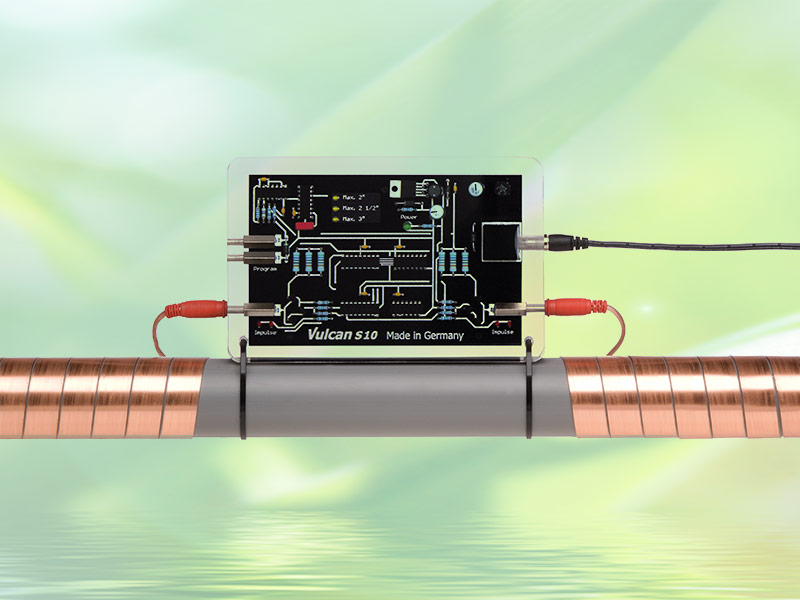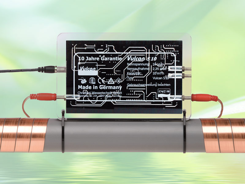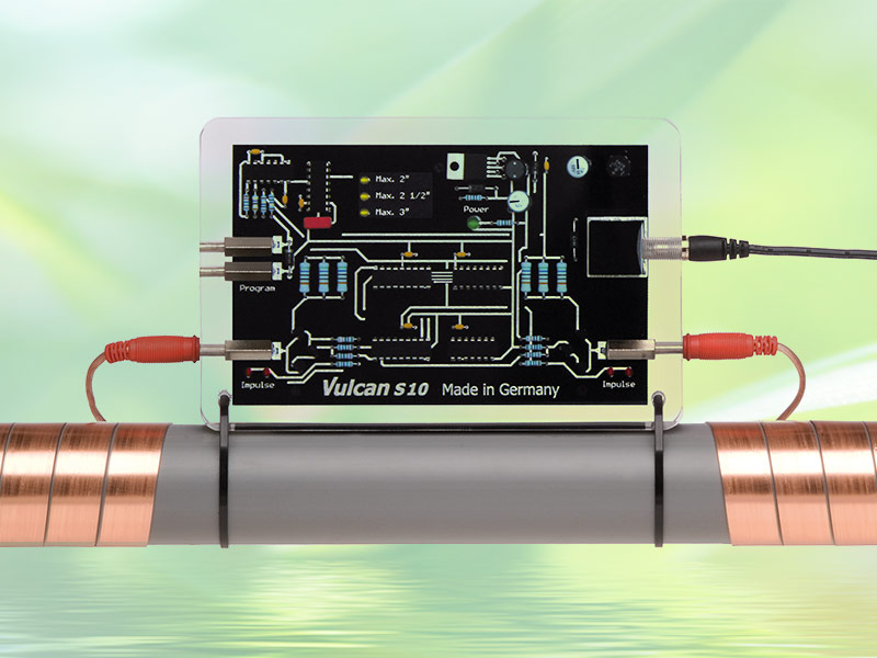 Vulcan es un sistema ecológico de tratamiento del agua el cual protege su sistema de tuberías y electrodomésticos contra depósitos calcáreos y óxido. La Tecnología de Impulso de Vulcan está basada en el principio del tratamiento físico del agua. Impulsos electrónicos especiales cambian el proceso de cristalización del calcio líquido. De esta manera las duras incrustaciones pierden su poder adhesivo. La tecnología trabaja exclusivamente con impulsos eléctricos capacitivos: